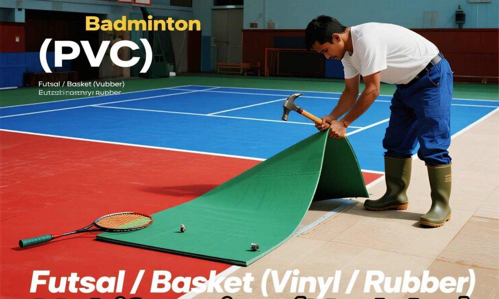 Vinyl/Rubber untuk futsal/basket – tahan lama dan anti-slip.